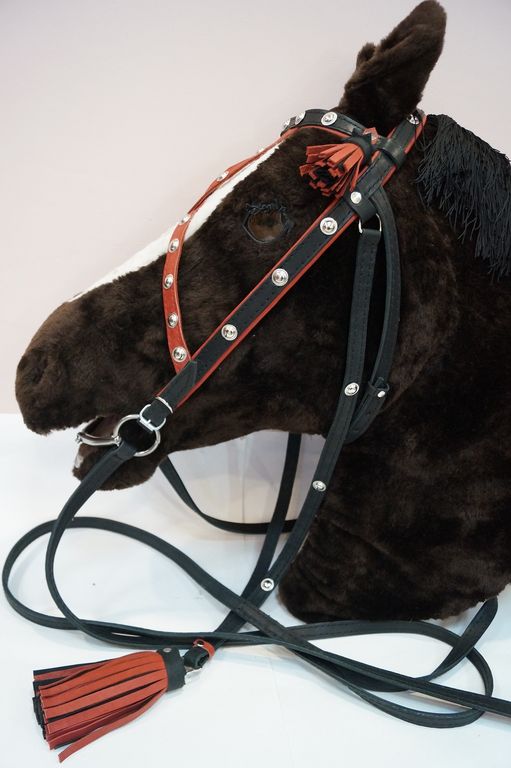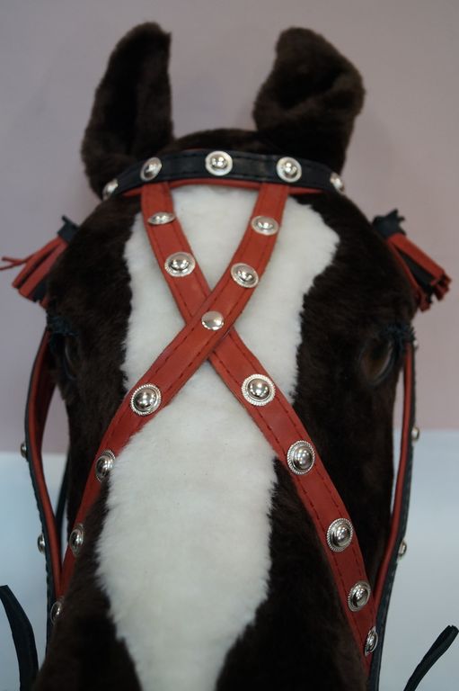 По уздечке нужно измерить длину нащечного ремня от того места, где крепится трензель, через ремень затылочного типа, далее по щечному ремню с другой стороны до трензельного кольца.