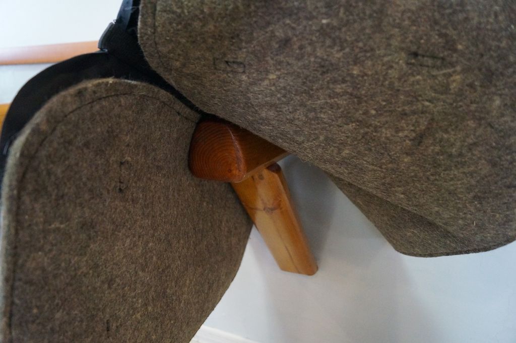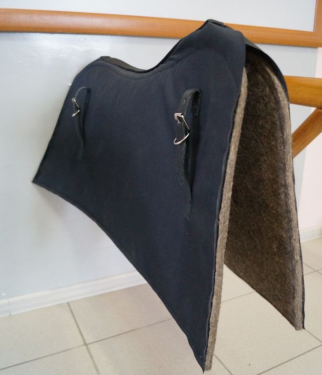 Основой потника служит плотный слой натурального шерстяного войлока, покрытого сверху защитным слоем прочной и водонепроницаемой ткани. Разработана для для длительного использования в походах.