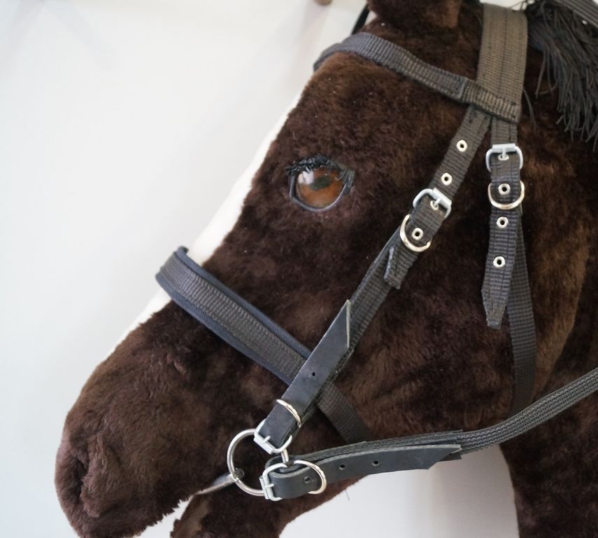 Прочная ременная узда с удилом и поводом размером от COB до FULL. Крепление к удилу и поводу выполнено из натуральной и толстой кожи.