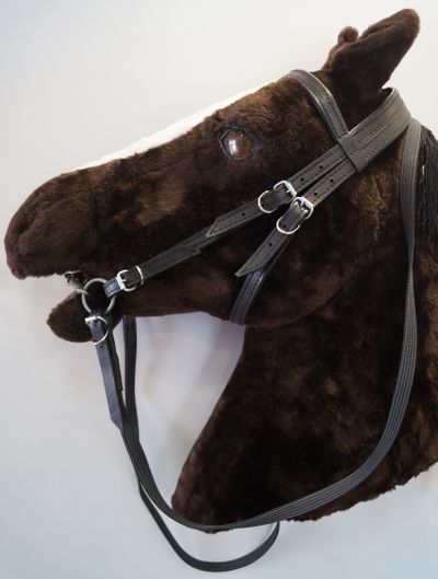 Узда из двух слоев натуральной кожи для дополнительной надежности прошита с капроновой лентой . Оснащена съемным трензелям ,регулируеться пятью пряжками из стали по размеру от COB до FULL. Идет с прочным ременным поводом (прорезинен) для управлением лошадью. Затылочный и налобный ремень имеют смягчающую подушку из натуральной (мягкой) кожи.