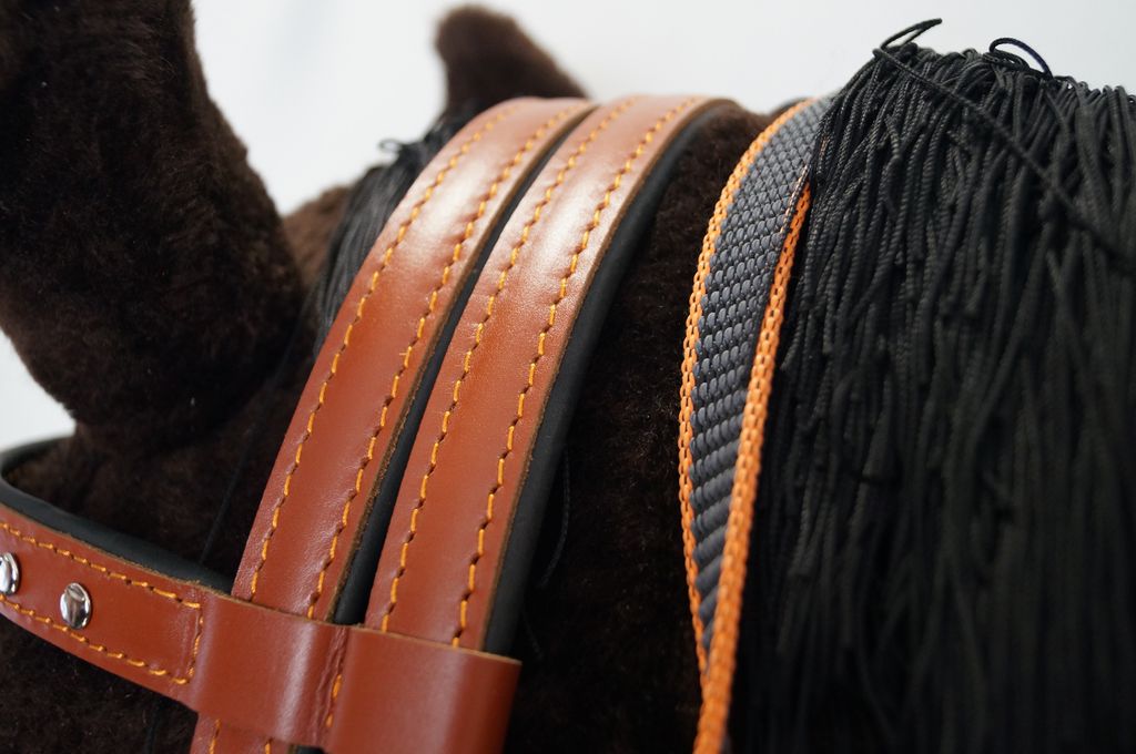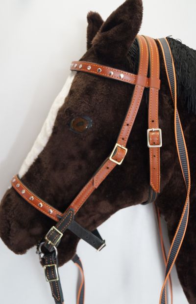 Изготовлена из качественной натуральной кожи рыжего и черного цвета ,а так же усиленных пряжек. Идет с кованым удилом,которое можно убрать или заменить на другое. Полностью регулируется пряжками под вашу лошадь .