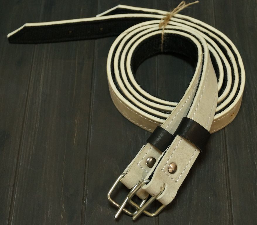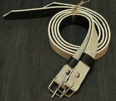 Сделаны из сыромятной кожи, синтетической ленты и стальной фурнитуры.